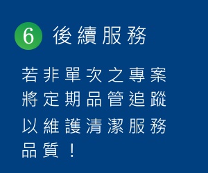 *後續服務︰若非單次之專案,將定期品管追蹤,以維護清潔服務品質。